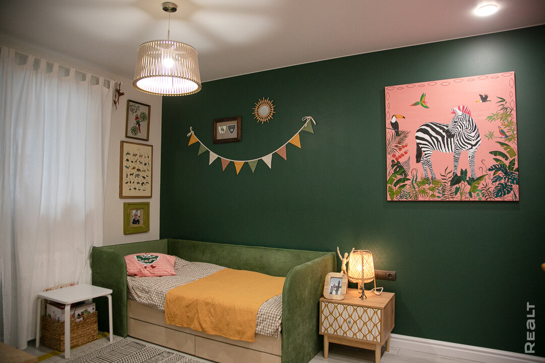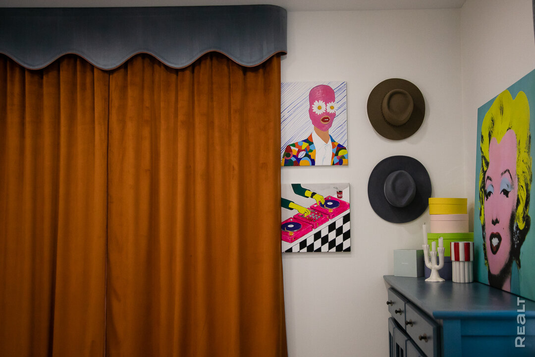 — С переездом сына его оттенок не меняли. Не смущает меня, что мальчик в таких цветах растет. У нас нет предубеждений касательно этого. Знаете, тут и так все насыщенно, но Феде и этого не хватает, — смеется девушка, вспоминая забавную историю. — Я только вернулась из отпуска и задремала на 15 минут. Открываю глаза и нахожу 15 банок открытой гуаши и отпечатки ладоней по всей квартире. Обои, пол, мебель и он сам были разукрашены. — Все отмыла, но следы на шторе решила не трогать, как напоминание.