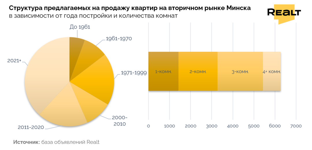 Совокупно за январь покупателям на вторичном рынке Минска в базе Realt были доступны для выбора порядка 6,3 тыс. квартир.