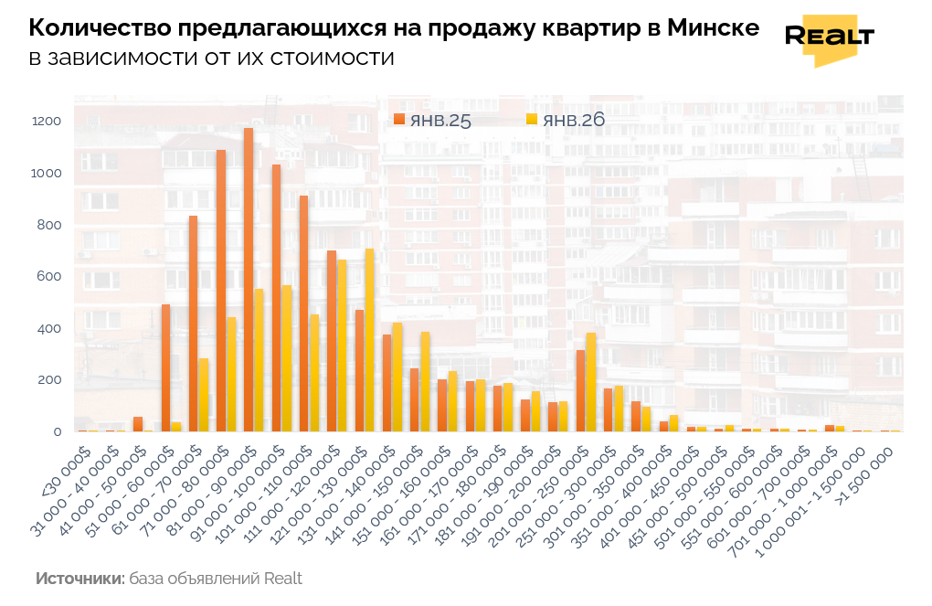 247Выбор квартир в Минске стремительно сжимается, а цены — наоборот, растут. Однушки исчезают быстрее, чем появляются, а просторные квартиры вдруг оказались «лишними». Что происходит с предложением на рынке и почему бюджетные варианты за последний год почти исчезли — разбираемся на свежих данных января.