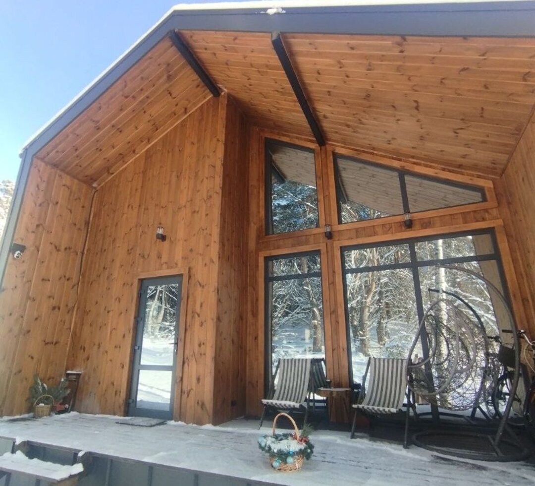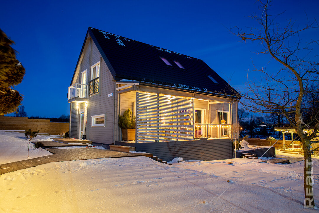 Загородный дом Натальи каркасный, с панорамным остеклением, общая площадь — 105 м2. Построен на совесть, качественно теплоизолирован, установлены энергоэффективные стеклопакеты.