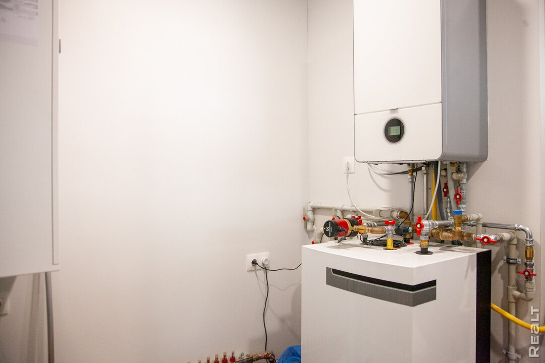 — Еще один дом с тепловым насосом мы обслуживаем в деревне в Минской области. Он каркасный, находится в низине, у реки. В этом году в этой местности температура воздуха опускалась ниже минус 30. Это оказалось проблемой — тепловой насос при таких температурах отключается, следовательно, дом остывает. Пришлось экстренно врезать в систему электрокотел, чтобы не разморозить систему, потом еще три дня поднимали температуру в доме. Электрокотел теперь служит резервом на случай отключения ТН в сильный мороз. Проблема на этом объекте еще и в том, что выделенная мощность от местных электросетей — максимум 6 кВт на все. Из них 3 кВт было выделено отопление, остальное — на бытовые приборы. Хорошо, что в доме зимой никто не живет и можно задействовать всю мощность на обогрев. В этой ситуации владельцу стоит подумать об дополнительном источнике тепла — котле на дровах или пеллетах, камине.