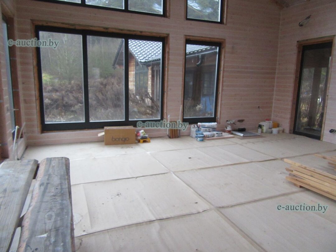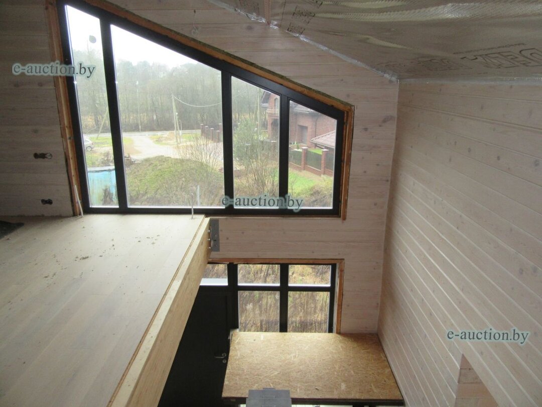 423В 15 километрах от Минска, рядом с водохранилищем Вяча, продается большой деревянный дом с панорамными окнами 2023 года постройки. К нему прилагаются новые хозблок и два навеса. Участок у леса, улица крайняя — локация завидная. Но у этого объекта имеются кое-какие особенности — чистовая отделка не закончена, продается через аукцион на площадке «БелЮрОбеспечение» за долги владельца. Узнали начальную стоимость.