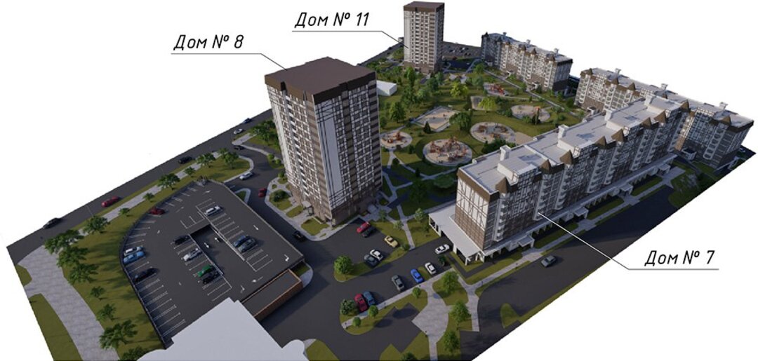 Дом № 7 по генплану 9-этажным, 4-секционным, серии М464−10-У1М. Под ним разместится встроенный гараж-стоянка на 55 машино-мест. Монолитные работы тут ведет СУ-3 треста № 1. Методом непрерывного бетонирования залита первая захватка фундаментной плиты объемом 740 «кубов», еще столько же бетона строители примут на этой неделе. Далее — стены и плита перекрытия. На этом миссия строителей первого треста завершится, затем к монтажу своих конструкций приступит МАПИД.