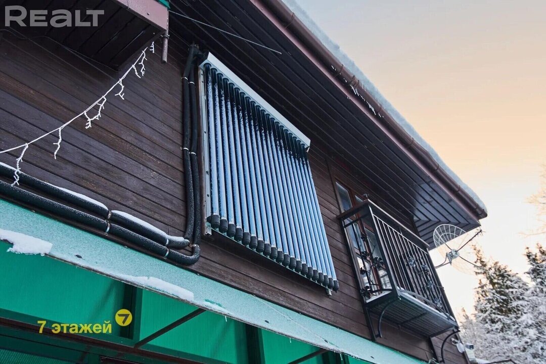 На фасаде мы заметили солнечный коллектор. Дмитрий говорит, что он рабочий, но сейчас не подключен — для его работы требуется бойлер на 300 литров.