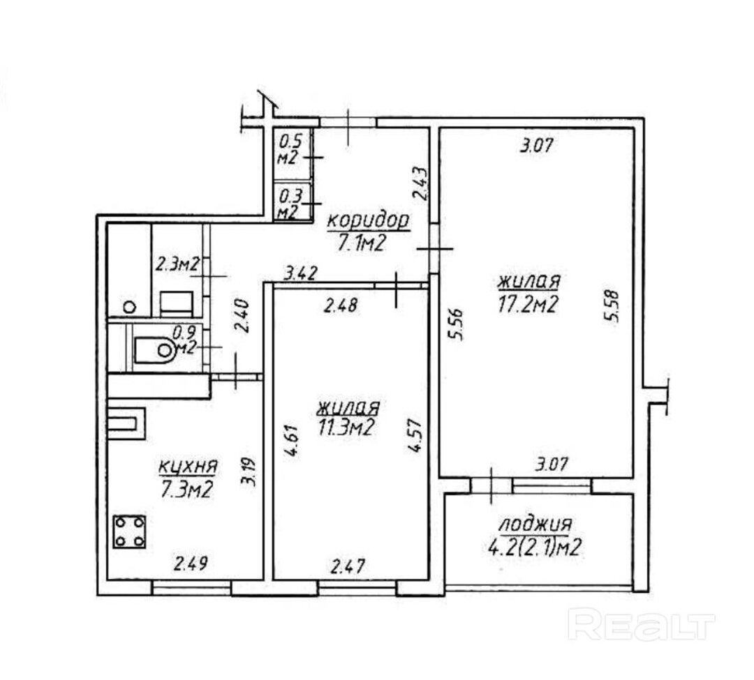 Самый дешевый вариант — это однокомнатная квартира в доме 1979 года постройки. В 2025-м в нем был сделан капитальный ремонт. Однушка расположена на четвертом этаже в тамбуре на две квартиры. Ее общая площадь — 32,99 квадратов. Из них жилая занимает 17,04 м², а кухня — 7,15 м². Объект с раздельным санузлом, застекленной лоджией, на которую выход из комнаты. Квартира теплая и светлая. Хотят за нее 64 тысячи долларов (квадрат — 1 940 долларов).