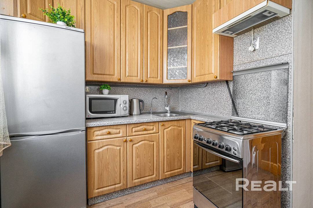 Жилье с раздельными комнатами и аккуратным ремонтом. В окнах стоят стеклопакеты, потолки выровнены и побелены. На полу уложен ламинат. Кухня идет с гарнитуром и бытовой техникой: газовой плитой, холодильником, вытяжкой. Также остаются стиральная машина и кондиционер.
