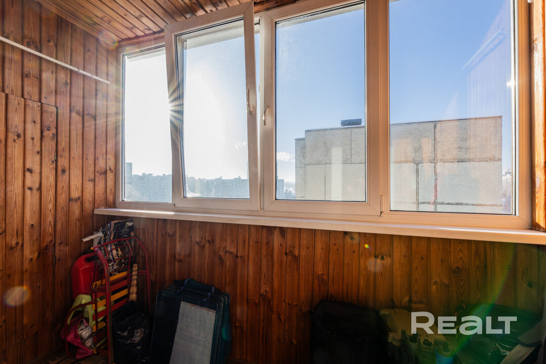 Двушка пребывает в хорошем состоянии. Одна из комнат здесь проходная. Балкона нет, но предусмотрена вместительная кладовая. Остаются практически вся мебель и техника.