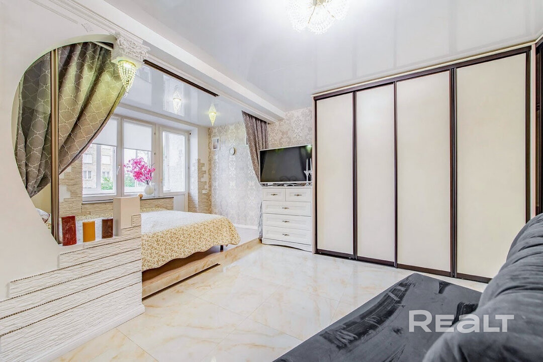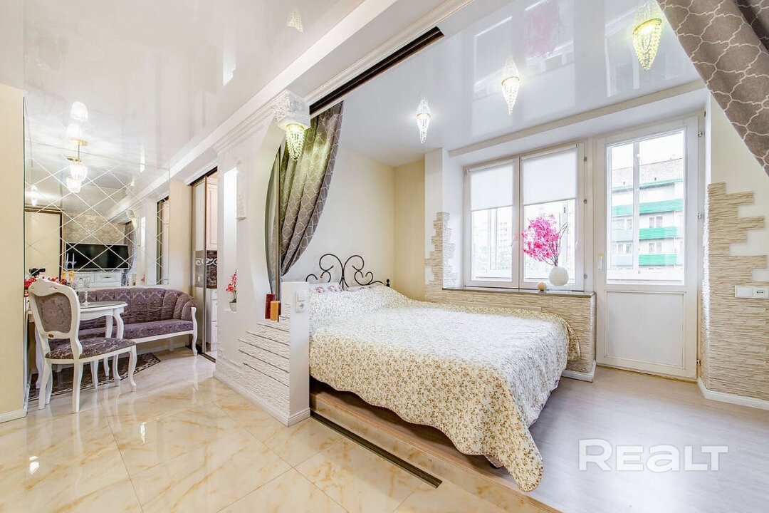 Последняя квартира подборки — однушка на Романовской Слободе, 12. До «Немиги» и «Фрунзенской» — 5−7 минут пешком.