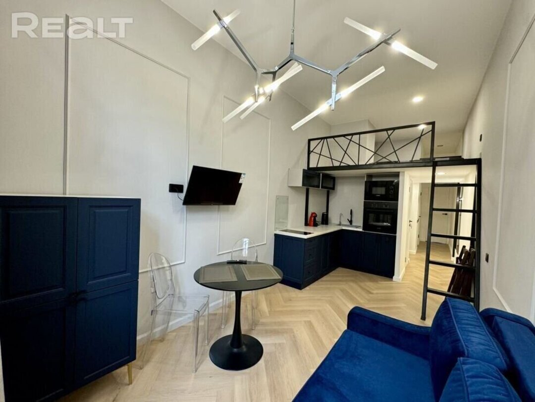 Последняя квартира подборки — однушка на Романовской Слободе, 12. До «Немиги» и «Фрунзенской» — 5−7 минут пешком.