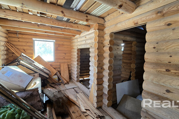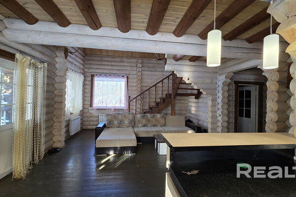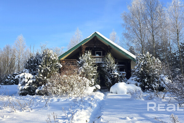 Нашли дом из бруса с баней в живописном месте недалеко от Минска. Он крайний и около озера