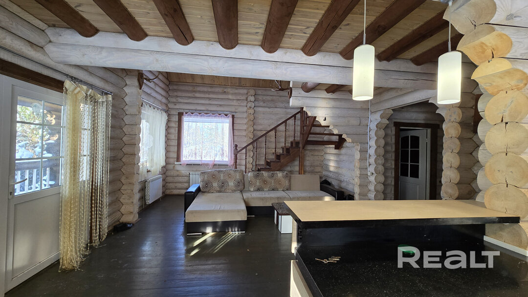 Нашли дом из бруса с баней в живописном месте недалеко от Минска. Он крайний и около озера