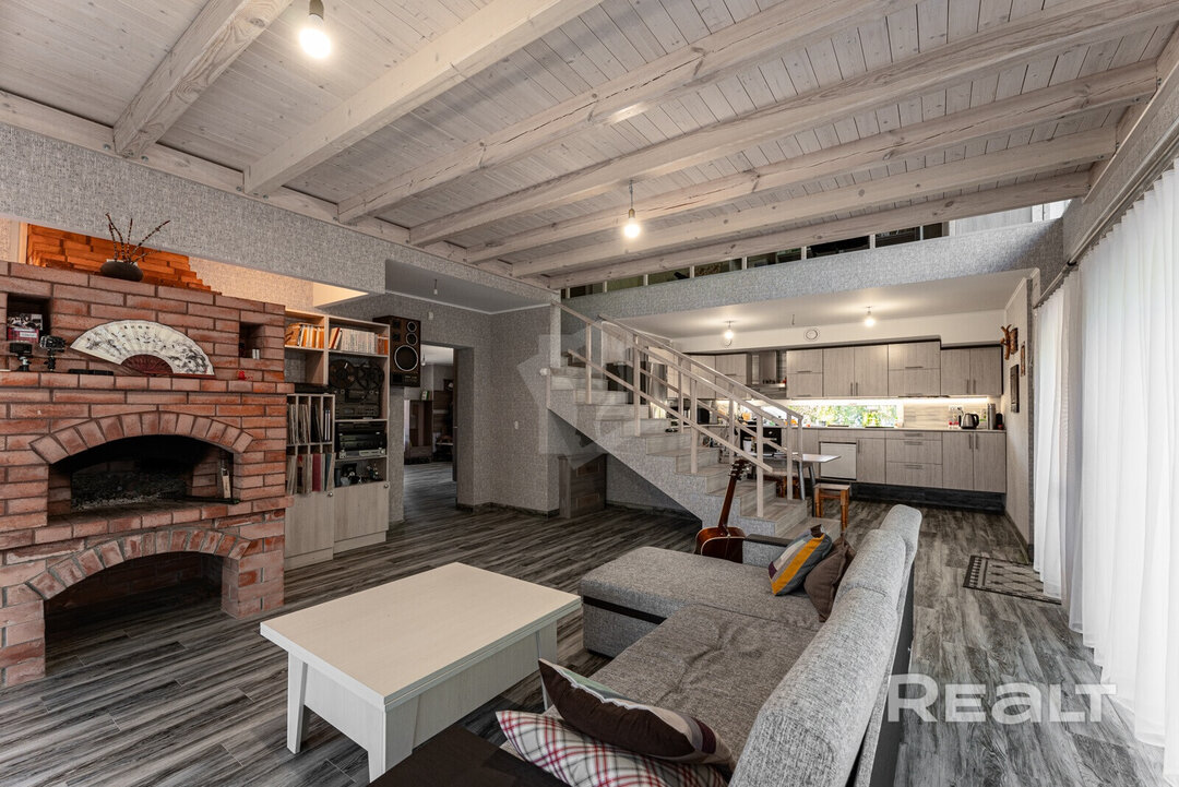 Сауна, камин и вид на пруд с форелью. В 13 км от Минска продается дом с отделкой