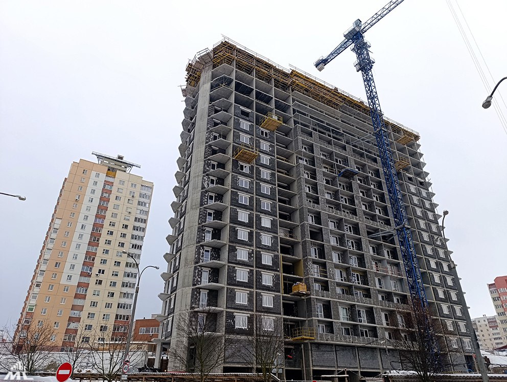 56824-этажный дом на 396 квартир на улице Каролинской строит УКС «Запад» и генподрядный филиал СУ-26 четвертого треста. Как идет стройка, рассказали в телеграм-канале «Минскстроя».