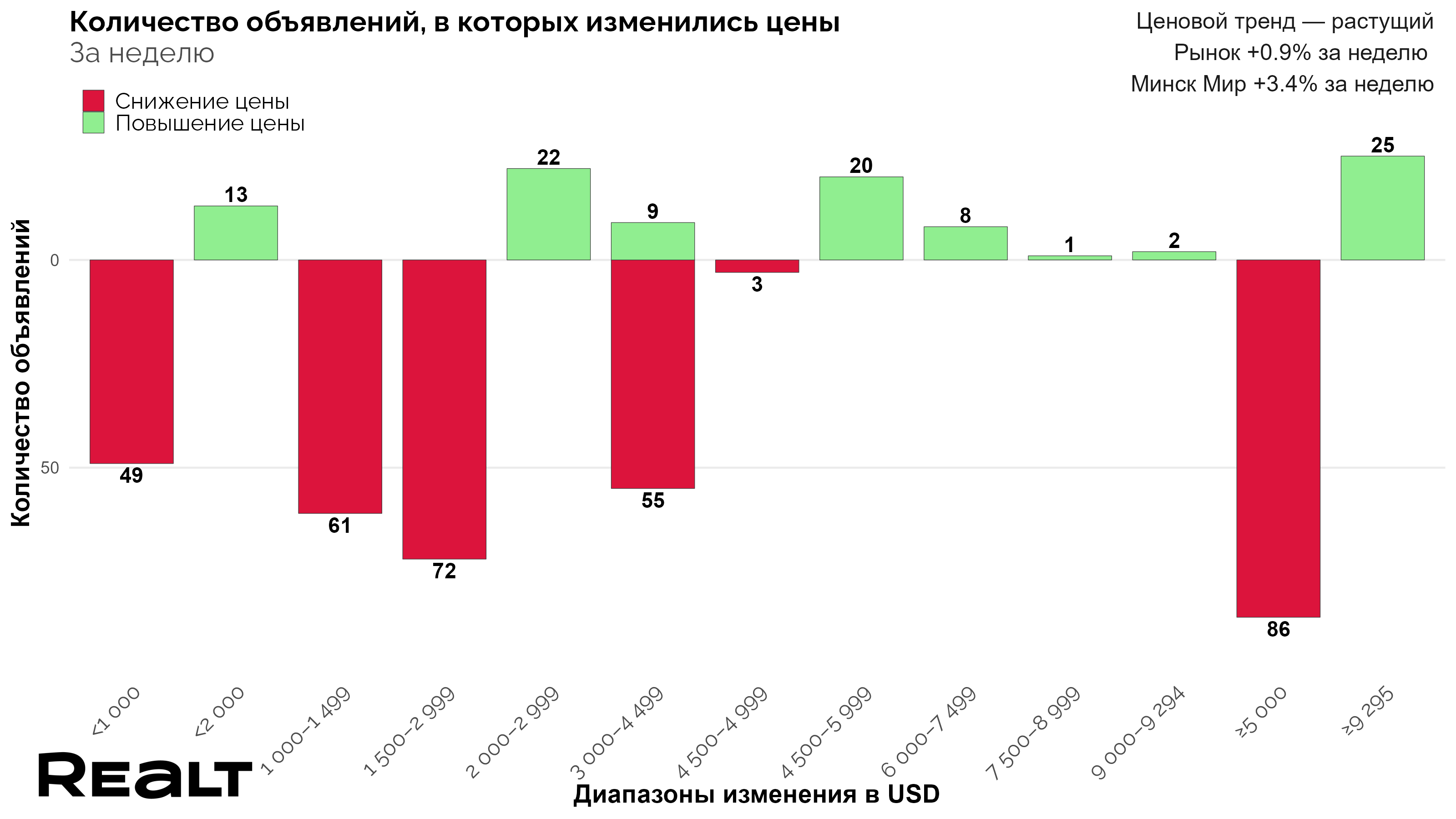 686На рынке вторички Минска продолжается парадокс: продавцы чаще идут на скидки, чем на повышение, но средняя цена квадрата снова обновила максимум. Что скрывается за этим «магическим» ростом и почему даже медианные расчеты подтверждают подорожание, подробности и причины — в аналитике Realt.