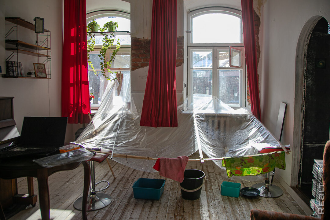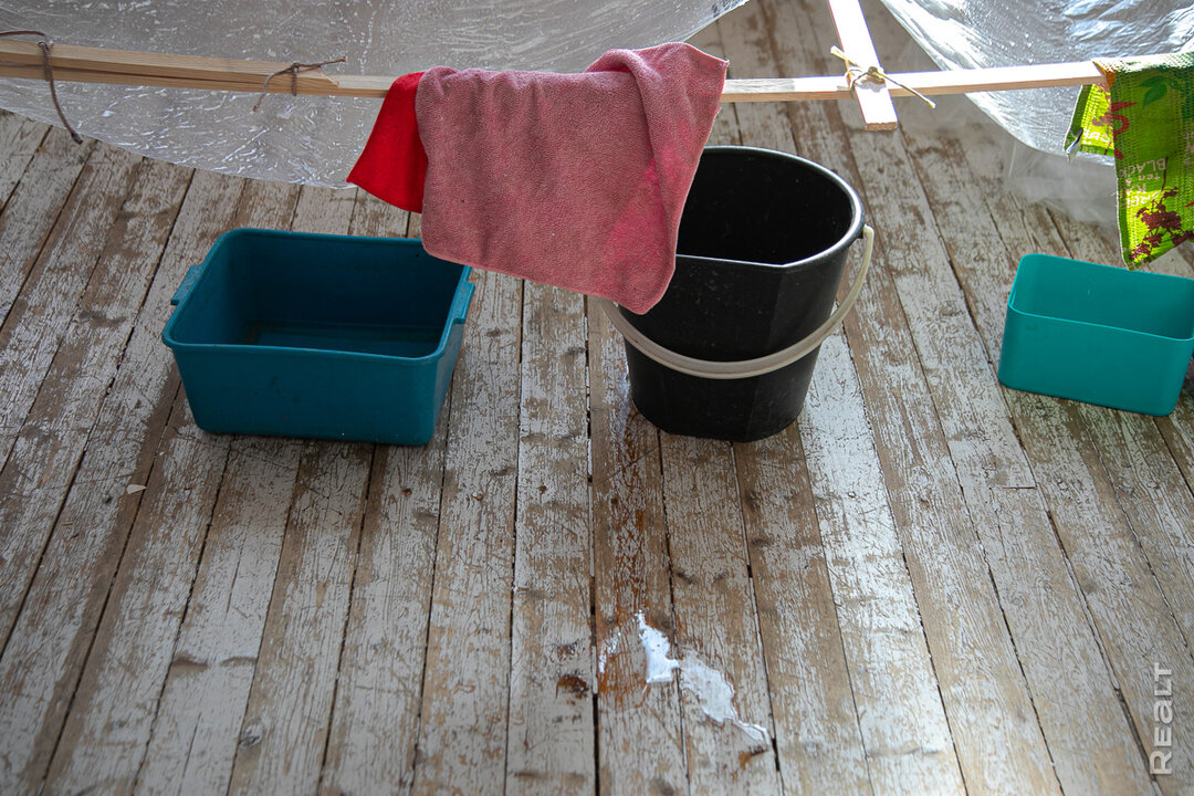 В редакцию Realt написал и сообщил о проблемах собственник квартиры на втором этаже. Сейчас его однушку арендует пианист Дмитрий. Музыкант застал в квартире «дождь» 7 февраля. Мужчина моментально отреагировал: сообщил в 115, после купил балки, пленку и соорудил навес, чтобы сберечь деревянный пол 19 века. Вся вода теперь стекает в ведра.