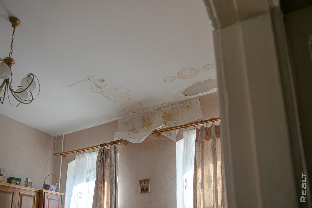 — Все началось три недели назад с потолка в зале. Мы сразу же сообщили о залитии службам. К нам приехали, тоже составили акт, но за это время вода перекочевала в спальню. Люстра начала трещать, в лампочке появилась вода. Мы перенесли мебель, переехали в одну комнату, а в той даже свет не включаем. Скоро должны прийти составлять второй акт. Кто знает, сколько еще снега будет. Солнце появляется — все тает и стекает к нам.