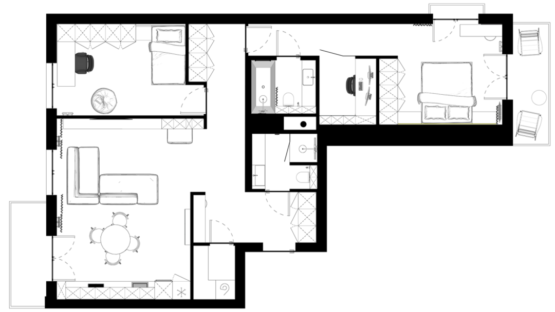 — Очень сильно влияют изначальная форма квартиры и дома, расположение несущих конструкций (колонны, стены), количество окон и их расположение, в том числе и то, на одну сторону они выходят или на разные. Расположение коммуникаций — очень важный пункт. Порой очень хочется сделать мастер-спальню с личной мастер-ванной, но из-за коммуникаций не всегда есть возможность воплотить эту идею. В моей практике были большие квартиры на 150−200 м², но из-за особенностей расположения коммуникаций и несущих конструкций выбор по расположению помещений в них был ограничен.
