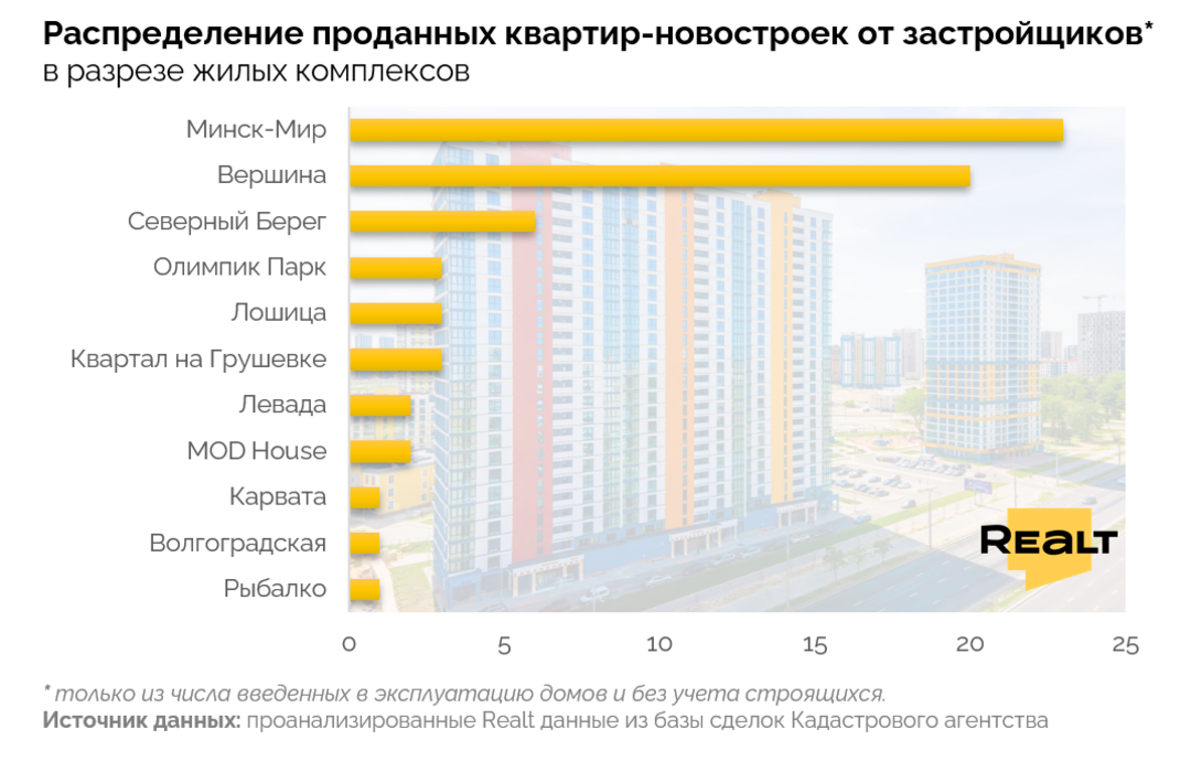 - основное количество относится к ЖК «Минск-Мир» и «Вершине» (см. диаграмму ниже).