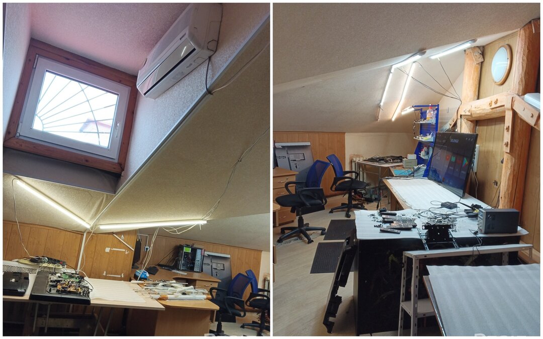 Сталинку на Ленина, 9 построили в шесть этажей в 1953 году. Как предполагает автор телеграм-канала «Минск и минчанин», мансардные пристройки появились в 90-х, но к верхним квартирам не относятся. Много лет назад в одном таком помещении с косым перекрытием он побывал сам. Там размещался офис компании, которая занималась установкой натяжных потолков.