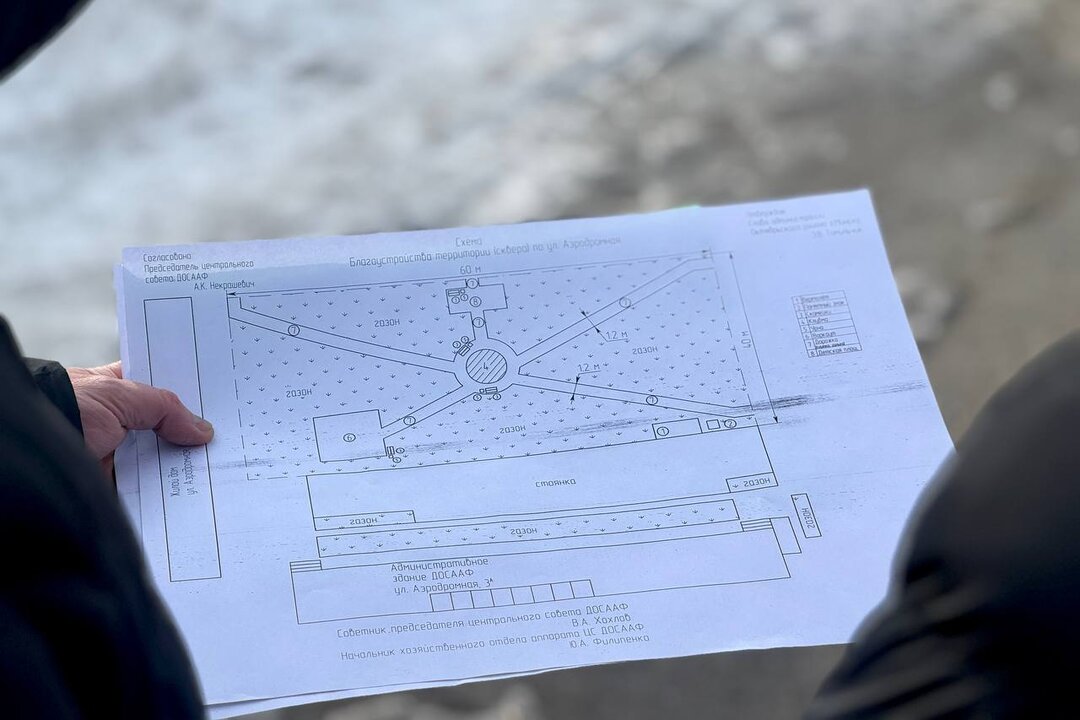 Место под будущую зону отдыха — это пустырь на дворовой территории домов № 1 и № 3 по улице Аэродромной. План ее создания совместно с Центральным советом ДОСААФ обсудили на выездном совещании с руководством администрации района. Вот это место на карте: