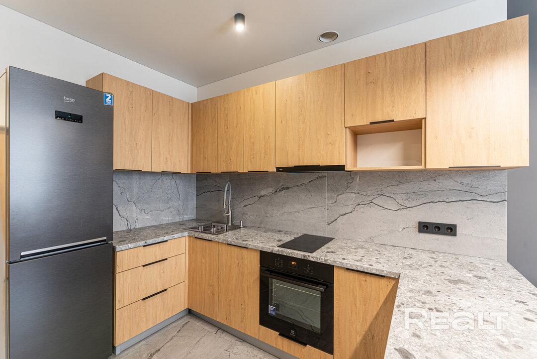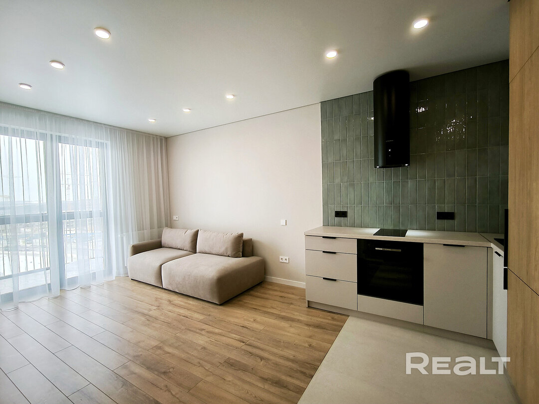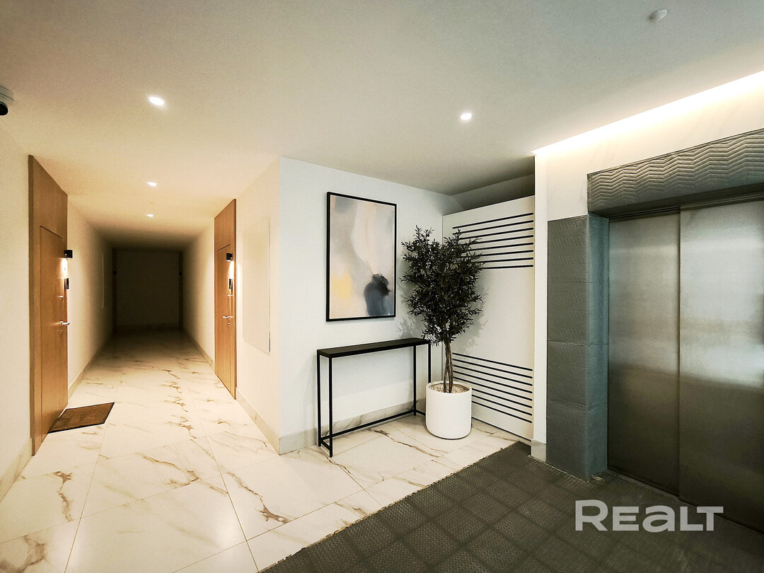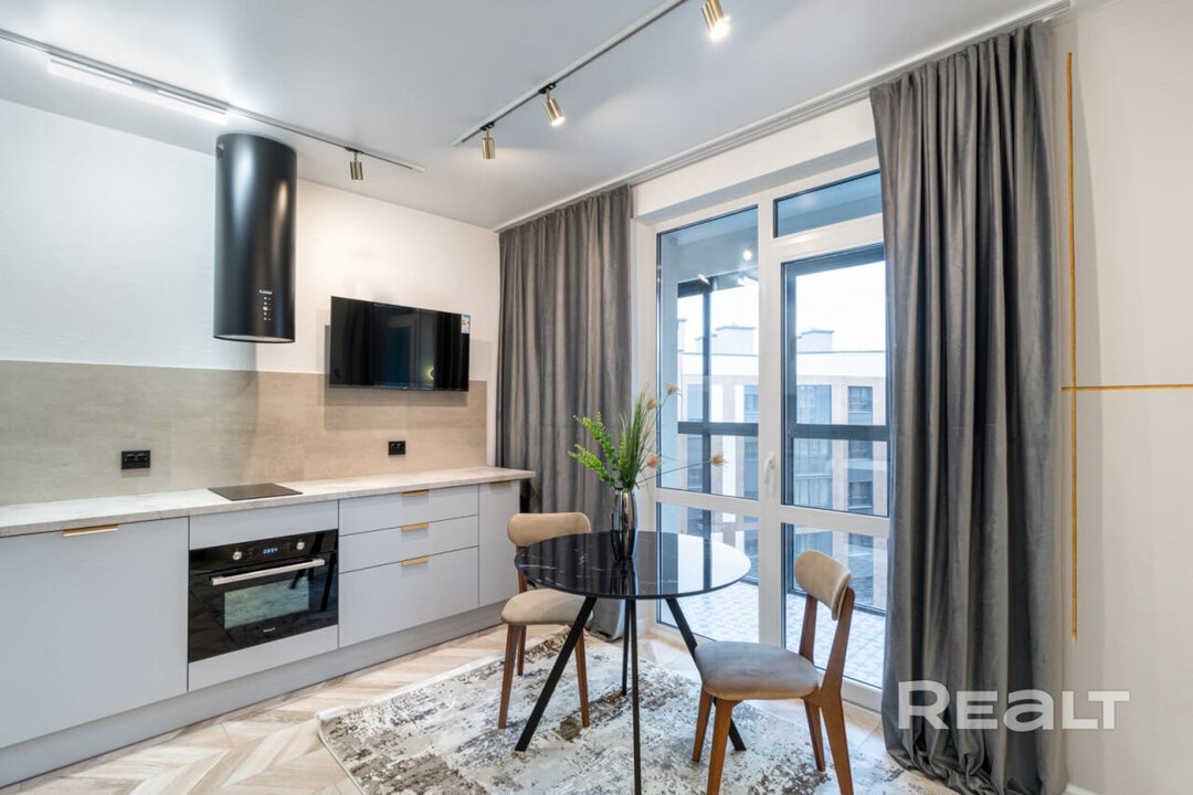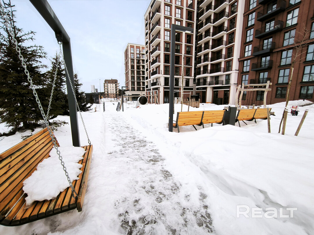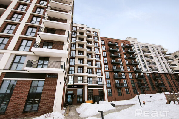 Евродвушка на седьмом этаже восьмиэтажного дома 2025 года постройки по адресу Виталия Цвирко, 84 в развивающемся Северном Береге. До пляжа Цнянского водохранилища около километра.