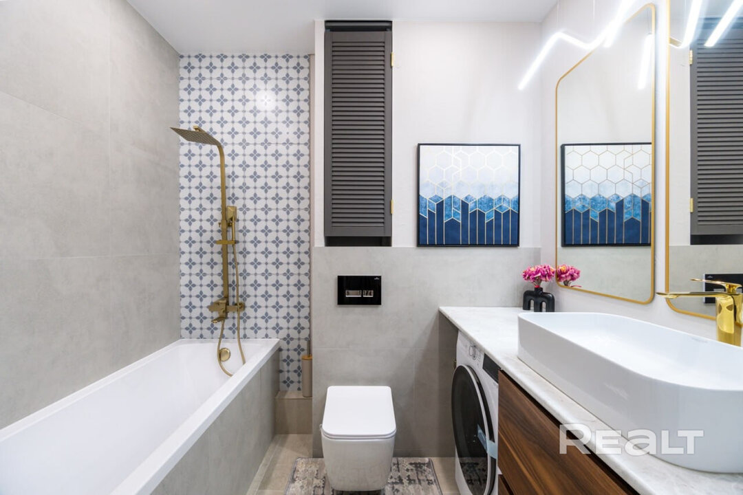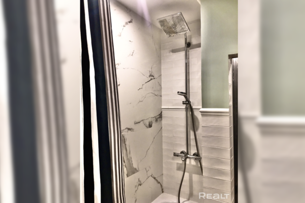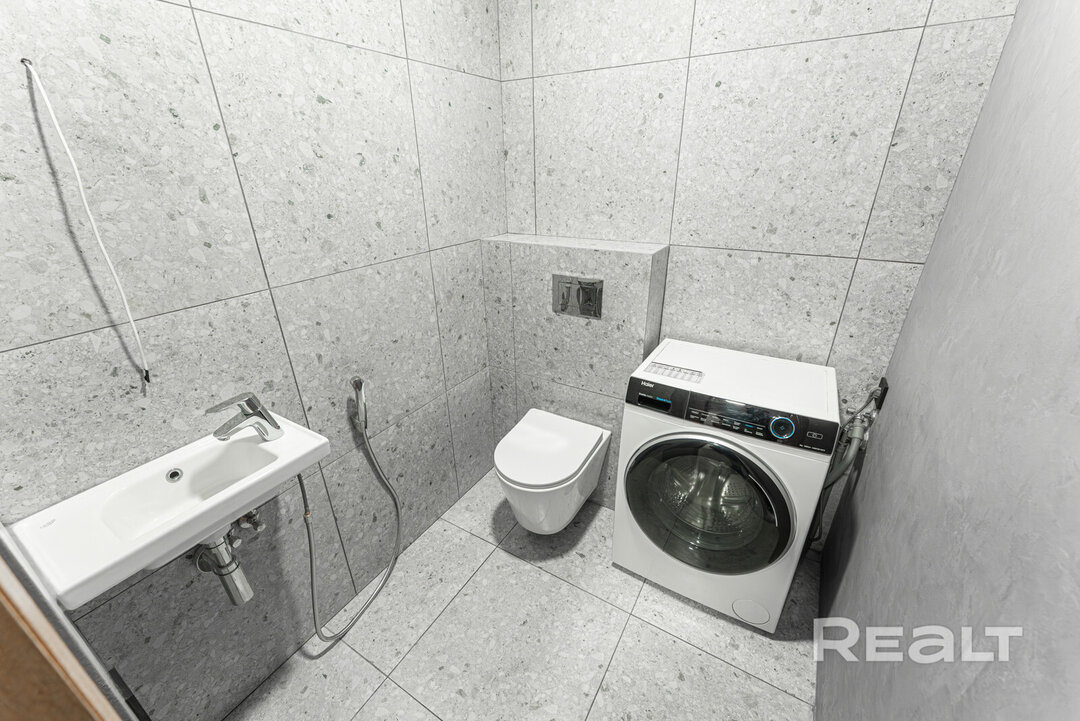 Санузел совмещенный. Установлена ванна с тропическим душем. Еть бойлер и фильтры для воды. Стиральная машина LG с сушкой установлена во встроенном шкафу. Есть две оборудованные гардеробные.