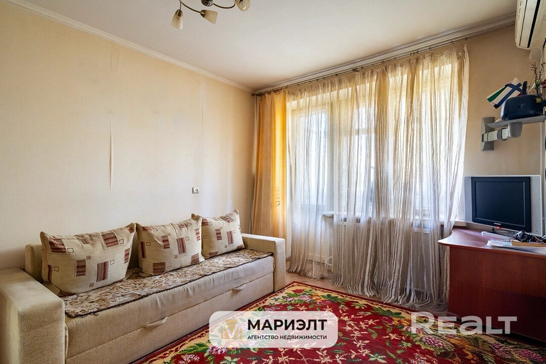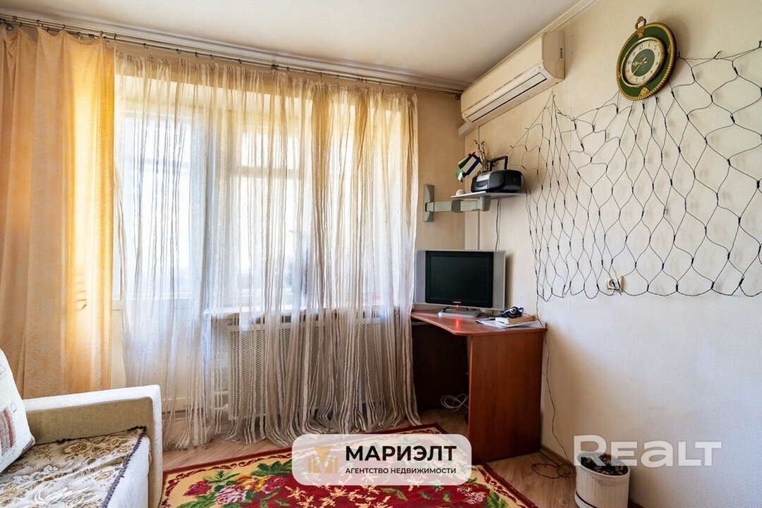 Жилье выглядит неплохо, местами нуждается в обновлении. В комнате есть выход на балкон, на месте ниши сделан шкаф. Установлен кондиционер.