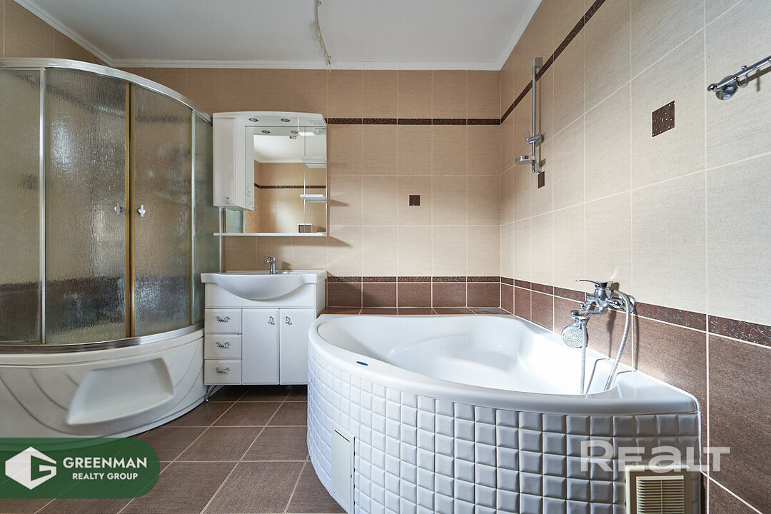 Каркасный дом 2009 года постройки в «старом» Марьяливо владельцы оценили на сто тысяч долларов дороже. Он тоже двухэтажный, с подвалом. Общая площадь — 227 м2. На участке имеются баня и автонавес.
