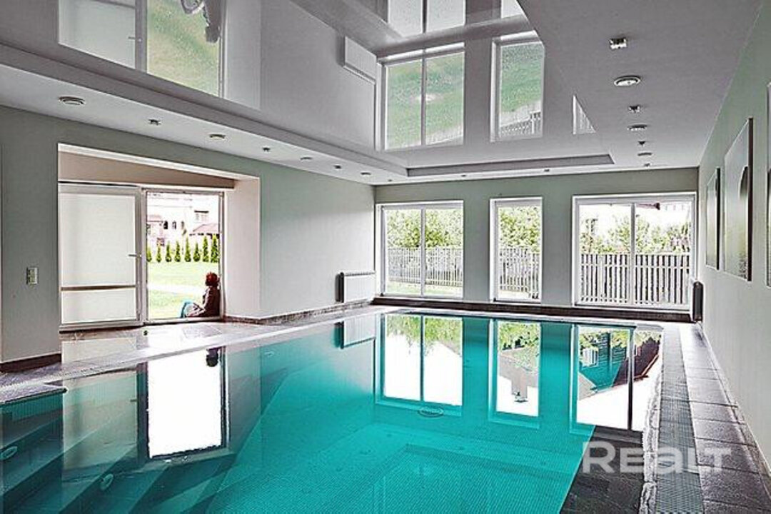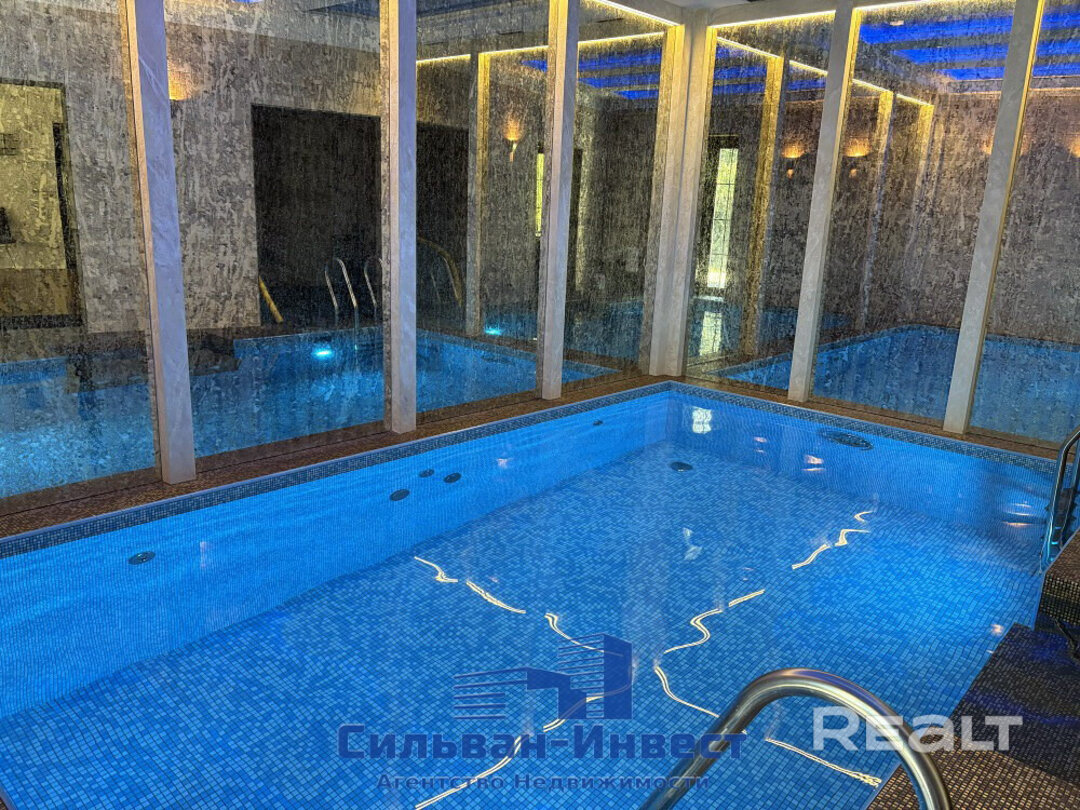 На участке 21 сотки находится еще одно строение — на 250 квадратов: с бассейном, баней, кухней, комнатой отдыха и террасой.