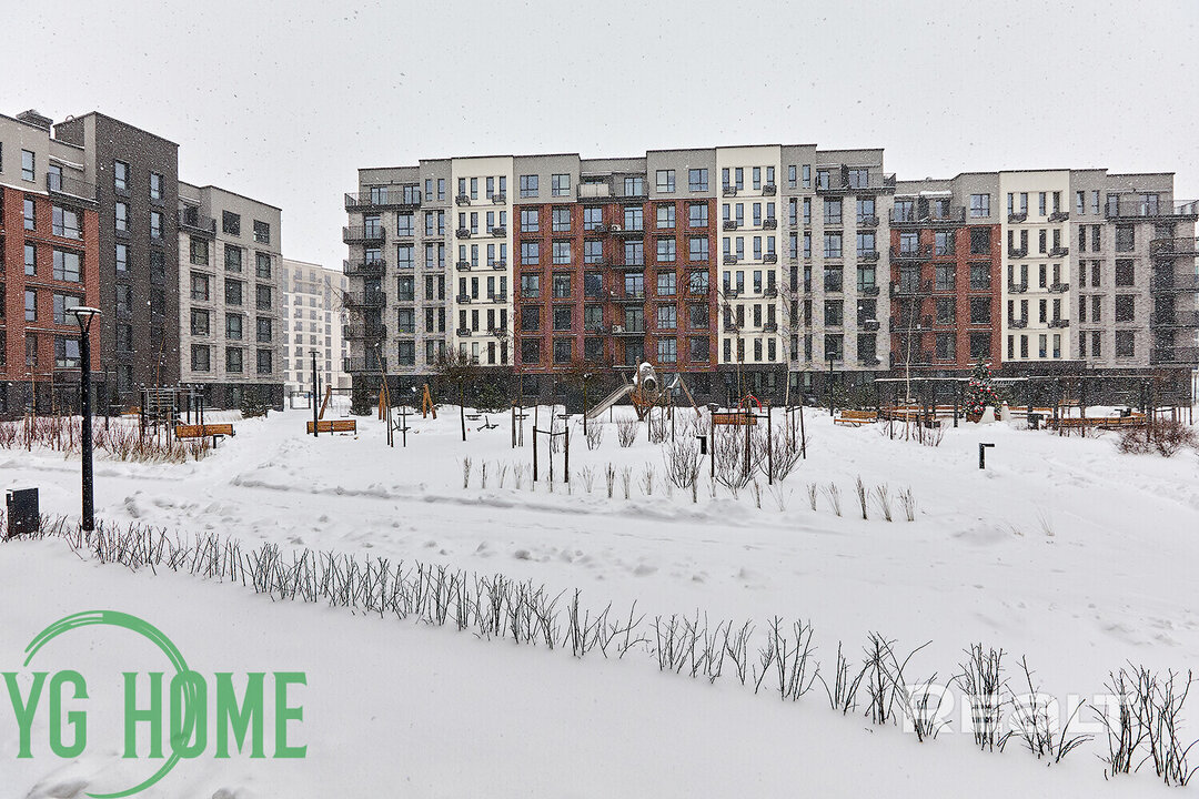 Дом по улице Виталия Цвирко, 78 — Парклэнд 1 — первый в ЖК «Северный Берег». Его возвели в шесть этажей в 2023-м. Здесь на втором уровне продается евродвушка в 58,8 м².