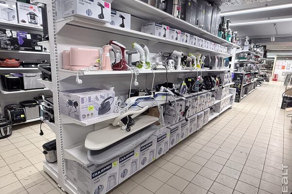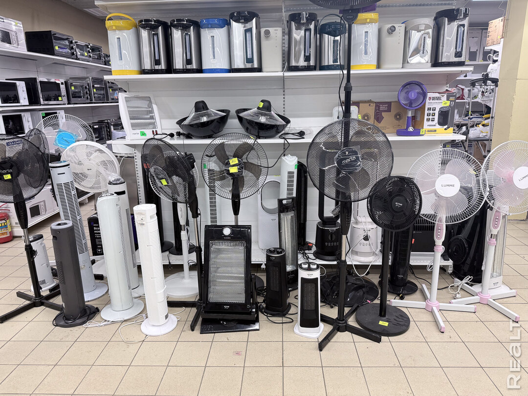 Из мелкой техники в магазине еще есть йогуртницы, блендеры, отпариватели, утюги, вакууматоры массажеры для ног. Еще можно купить обогреватели и вентиляторы. Также есть строительные материалы — электропилы, перфораторы, шуруповерты.