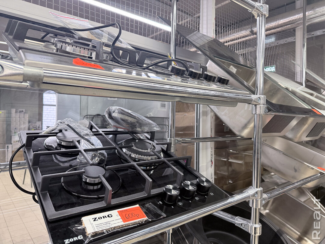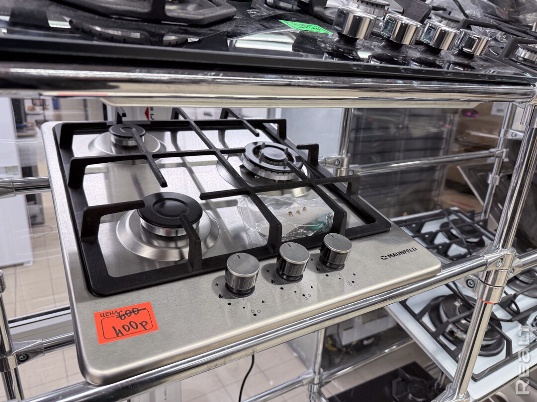 Варочные панели — в основном газовые, от российского бренда Maunfield. Цены, в среднем, от 350 до 500 рублей. За 600 рублей продается газовая плита от чешского бренда Zorg.