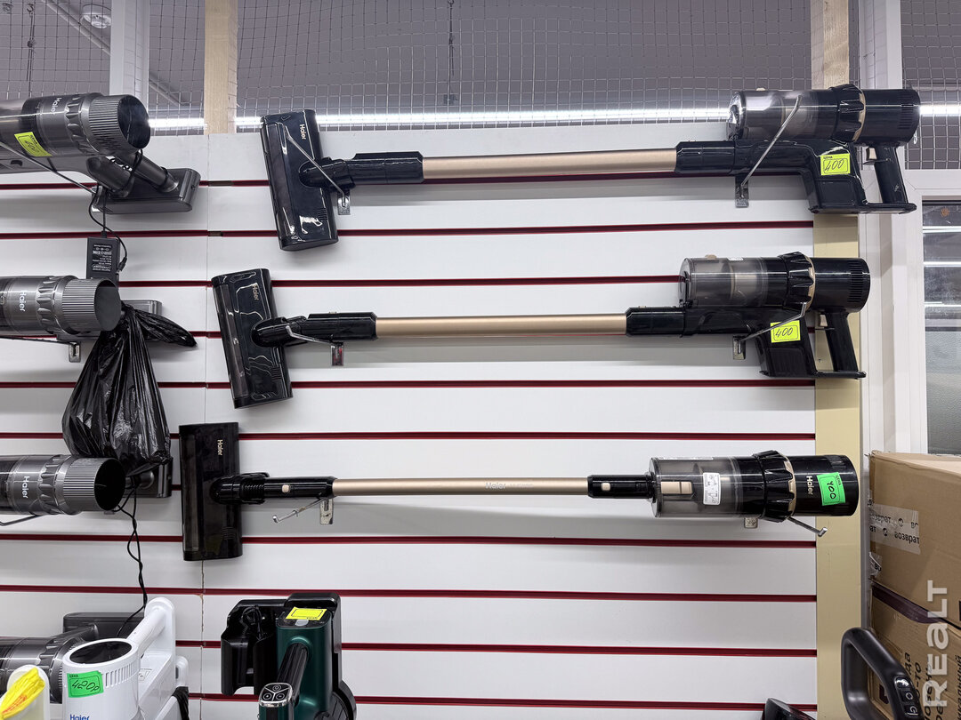 В магазине большой выбор пылесосов — есть моющие, робот-пылесосы и вертикальные. Самые большие скидки мы нашли на модели от китайского Haier — вертикальный пылесос продается за 1 200 рублей вместо 2 250 рублей, а робот-пылесос с влажной уборкой можно купить за 1 500 рублей при его стандартной цене около 2 500 рублей. Представлено и много бюджетных моделей — от 150 рублей. Некоторые модели очевидно бывшие в употреблении, но многие выглядят как новые.