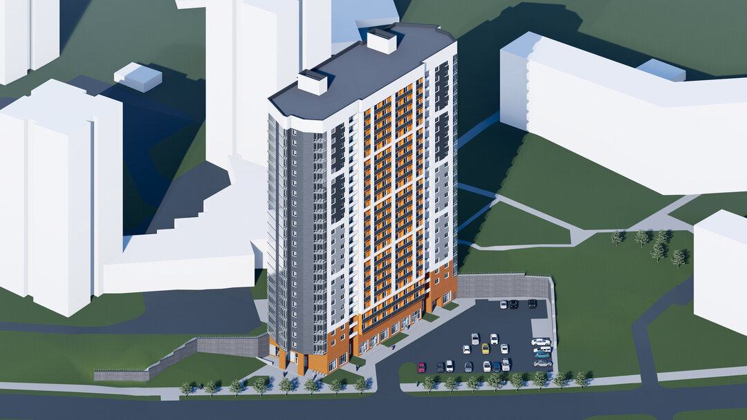 Кстати, обратите внимание, что из-за большого перепада высот входы в здание будут организованы на первом и третьем этажах. С улицы попасть в дом можно будет с нижнего уровня — там расположатся торговые помещения, колясочная и велосипедная. А со стороны двора будет организован вход сразу на третий этаж, откуда и будут начинаться жилые квартиры (они займут 3−24 этажи). На втором этаже будут размещены кладовые жильцов.