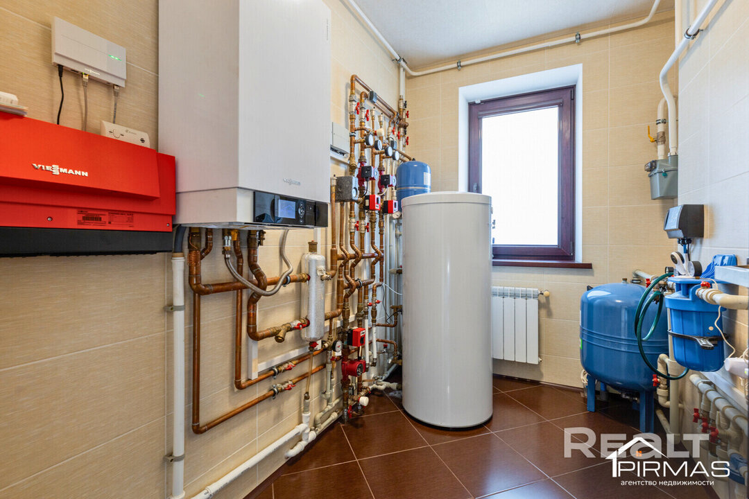 Не менее ценное и важное в этом доме — отлаженная инженерия. Здесь газовое отопление с автоматикой и водяные тёплые полы по всему дому. Собственная скважина глубиной 62 метра и мощная система очистки воды дают воду чище, чем из бутылки. Есть стабилизатор и резервный генератор на случай перепадов напряжения, проведено оптоволокно для быстрого интернета, подключено видеонаблюдение.