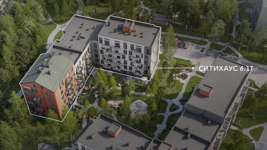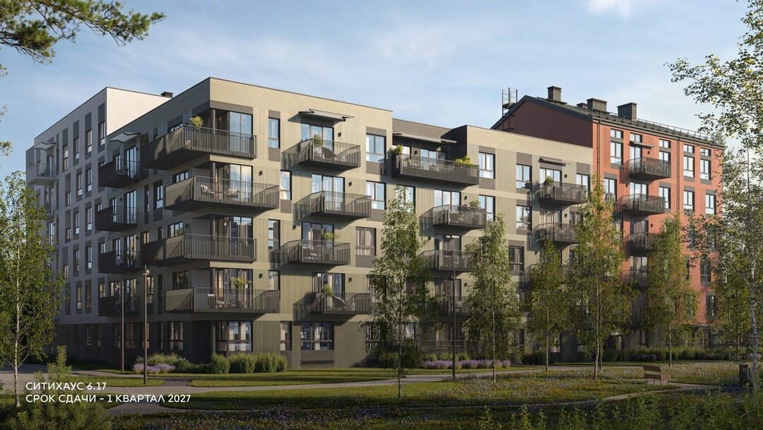 Ситихаус 6.17 строят по монолитной технологии. Из окон дома будет открываться вид на природу. В то же время в шаговой доступности от жилья будут магазины, кофейни, аптека и стоматология.