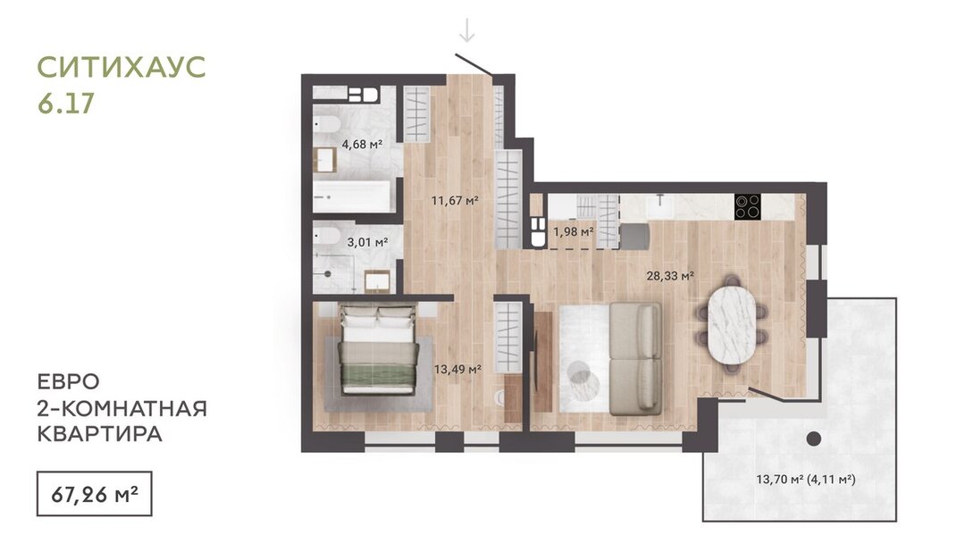 В ситихаусе спроектировано три подъезда на 72 квартиры. Такая камерность создаст ощущение приватности и уюта. Квартиры будут просторные, евроформата — от двух- до пятикомнатных. Доступные площади — от 37 до 110 квадратов.