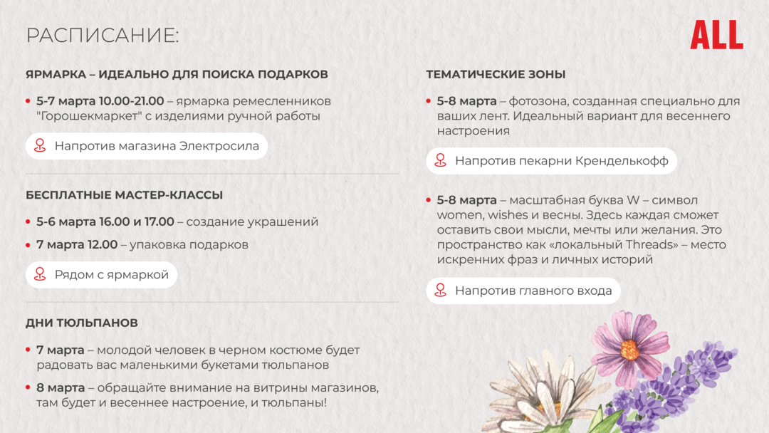 В ТЦ ALL встречают весну — четыре дня бесплатных мастер-классов, подарков и цветов