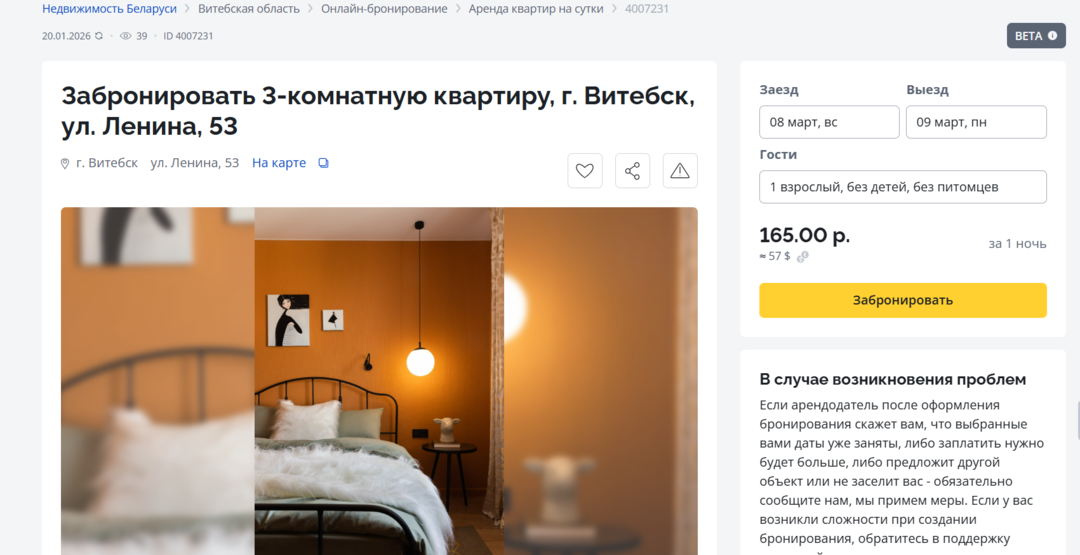 И вы так же легко можете арендовать квартиру на сутки не только в Витебске, но и по всей Беларуси на сервисе Realt. Бронь.