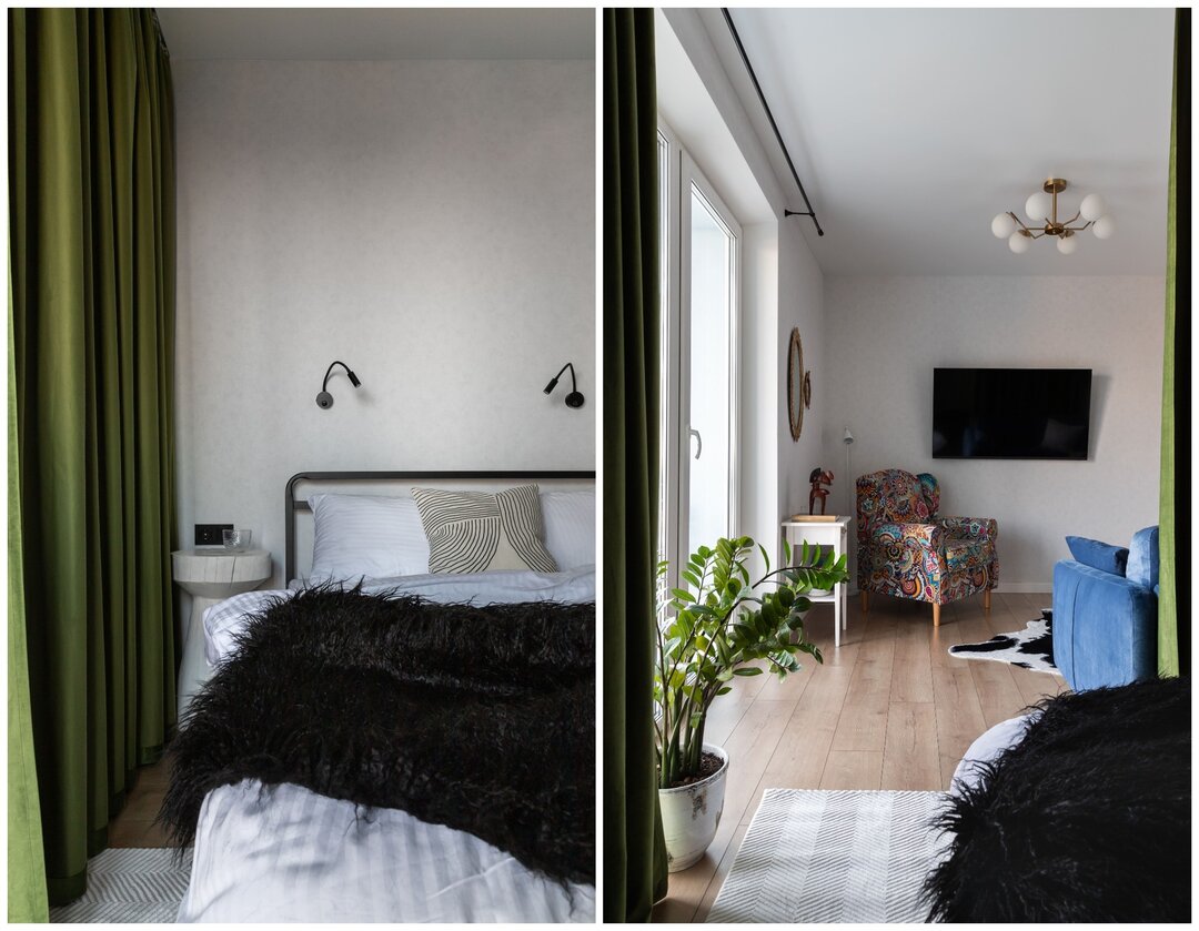 Владельцы хотели сохранить три спальных места, но не делать их одинаковыми. Юлия придумала окружить туриста гостеприимством, предложив комнаты с разным настроением.