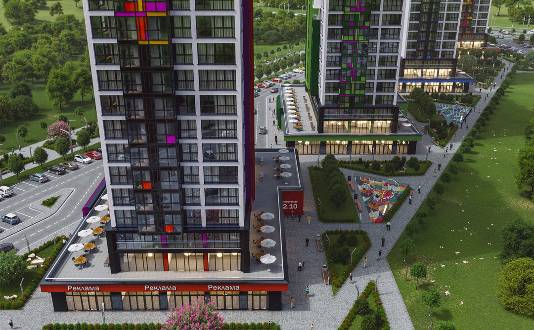 Концепция комплекса и развитая инфраструктура привлекают сюда активную и платежеспособную аудиторию.