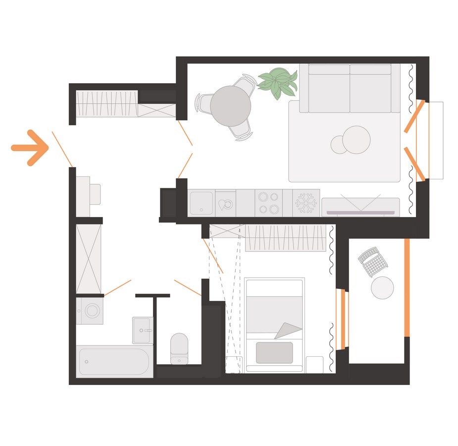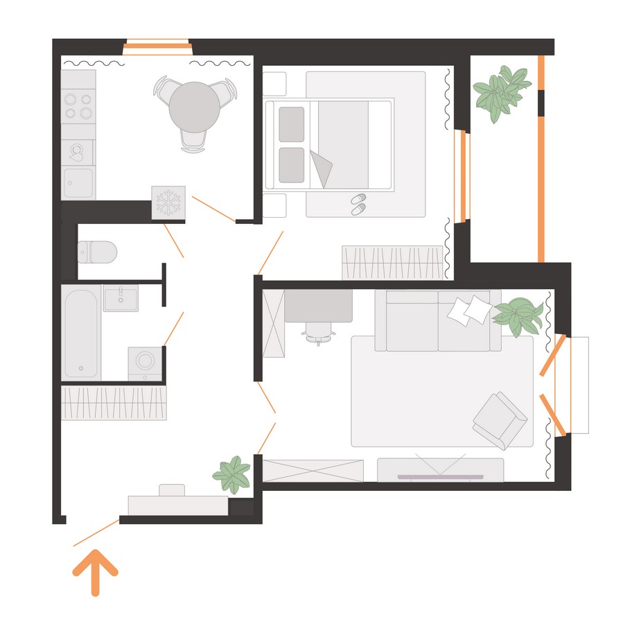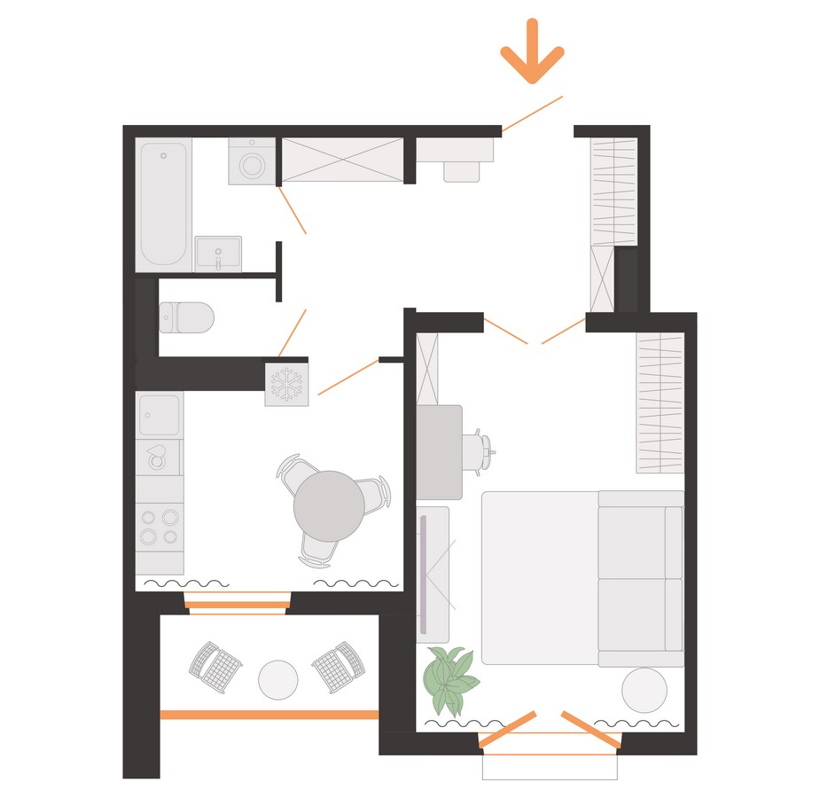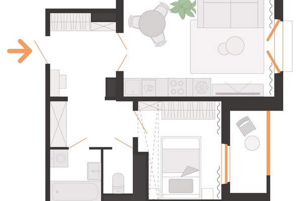 В доме — один подъезд. По традиции на первом этаже разместят колясочную и лапомойку, стильную навигацию, чат-доски и полки для буккроссинга. Среда будет безбарьерной: со стороны двора есть пандус, а с улицы — специальный подъемник для колясок.