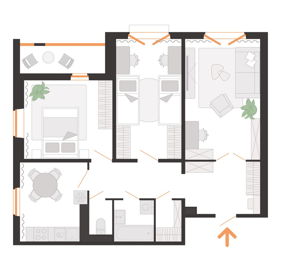 В настоящий момент коробка дома на 15 этажей уже возведена. В многоэтажке запроектировано 104 квартиры: от однокомнатных до трехкомнатных площадью от 44 до 78 квадратов. Предусмотрены как классические планировки, так и квартиры евроформата.