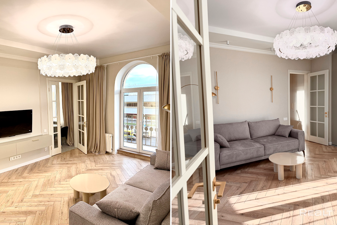 173Стильную квартиру в комплексе «Ворота Минска» можно снять на сутки в сервисе Realt. Бронь. Это отличный вариант для тех, кто приезжает в Минск и хочет остановиться рядом с железнодорожным вокзалом. В этой двушке хороший ремонт и сохранена аутентика сталинки — высокие потолки, арочные окна и полы, уложенные елочкой. Realt. Бронь позволяет легко выбрать квартиру на сутки по вашим пожеланиям.