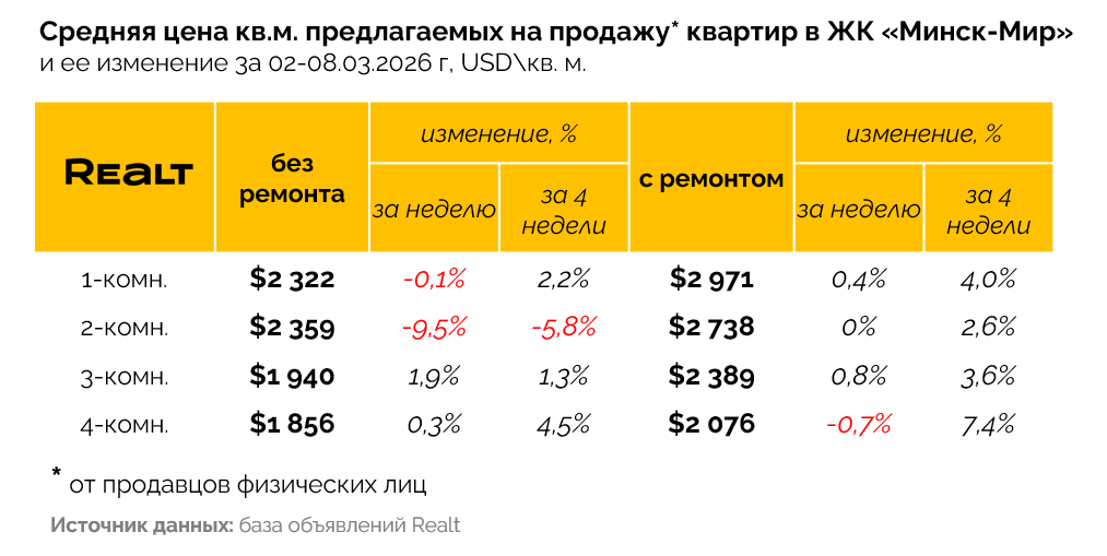 Но важно понимать, что цены объявлений, это всего лишь желания продавцов, в то время как итоговые цены продажи, считаются по факту сделок. Поэтому в следующем материале, после того как мы проанализируем все сделки за февраль, мы расскажем, насколько большая разница получилась по «Минск-Миру».