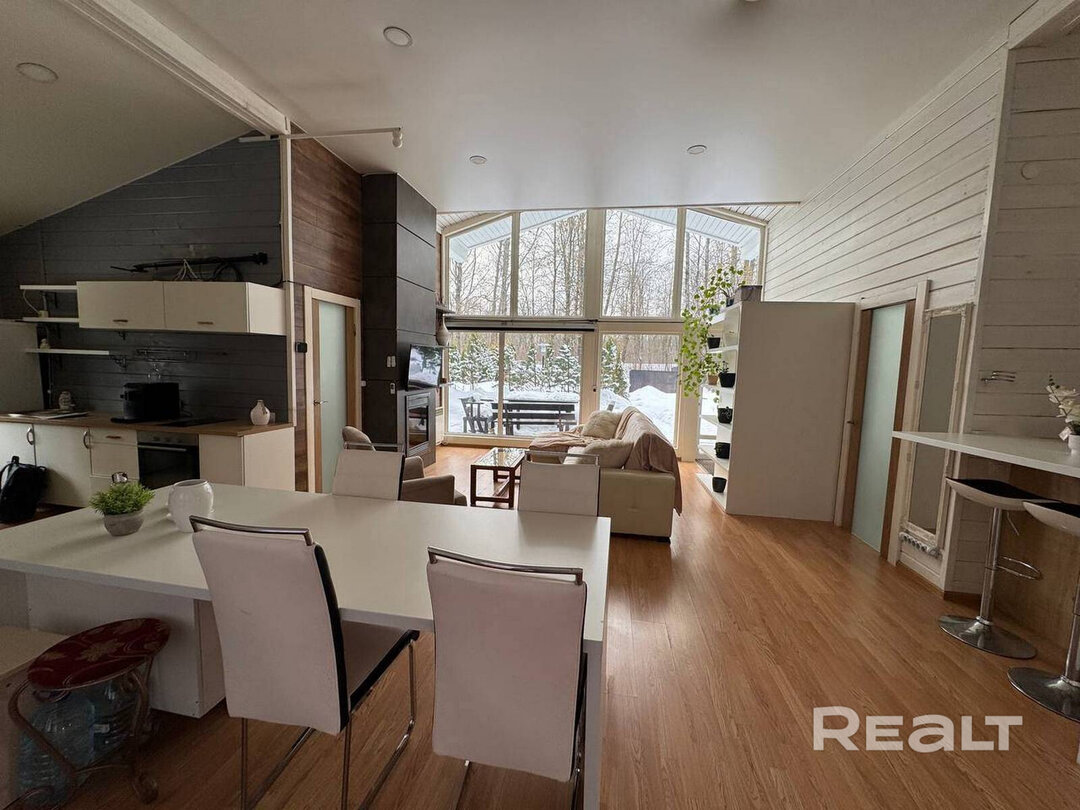 Дом находится в СТ «Виола», неподалеку расположены главные горнолыжные курорты — «Силичи» и «Логойск». Ближайший город с развитой инфраструктурой (Логойск) — в 7 минутах езды. Там можно найти школы, детские сады, больницу, поликлинику, гипермаркеты, рынки, кафе и даже кинотеатр. От МКАД — 25 километров, Логойское направление.