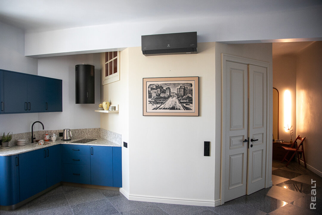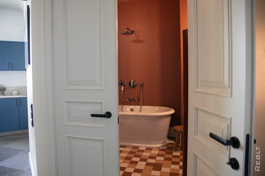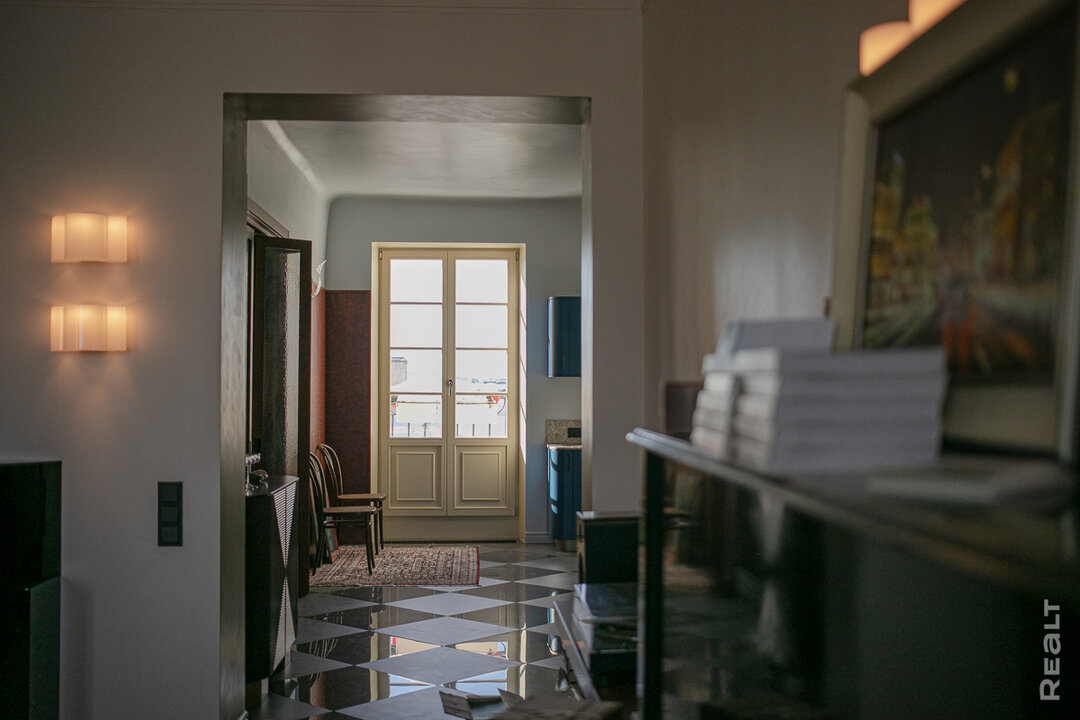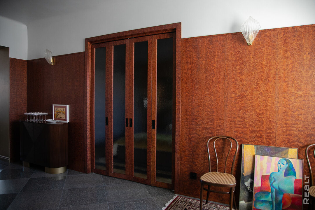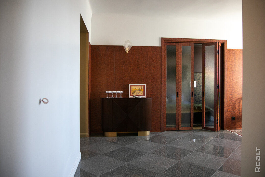 — Цель ремонта — воссоздать обстановку, в которой жила белорусская элита. Двушку пришлось немного переделать в зоне коридора. Он был угловым и длинным. Из-за этого пространству не хватало естественного света. Мы объединили коридор вместе с кухней, и у нас получился просторный холл, который освещается с двух сторон.