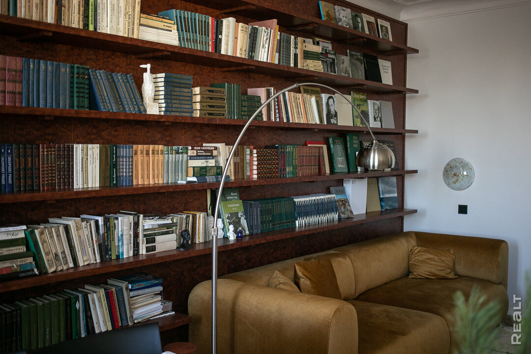 Мебель и декор заполняли комнаты со временем. Сюда искали аутентичные предметы и, конечно, книги. Раньше в каждой квартире этого дома была своя библиотека. Авторы по-доброму между собой соревновались. Виктория под книжные полки выделили целую стену в гостиной. Оказалось, что в прошлом они были на том же месте. Произведения сюда приносили гости, друзья семьи, но самыми ценными экземплярами Вика называет книги, подаренные Натальей Ивановной. Одна из них — сборник ее мужа. Книга простояла в квартире все время. Женщине хотелось, чтобы она там и осталась. Бывшая владелица была в квартире после продажи лишь раз, но еще не видела результаты переделки. Вика все стесняется ее пригласить, переживает, понравится ли. Договорились, что наше интервью станет отправной точкой.