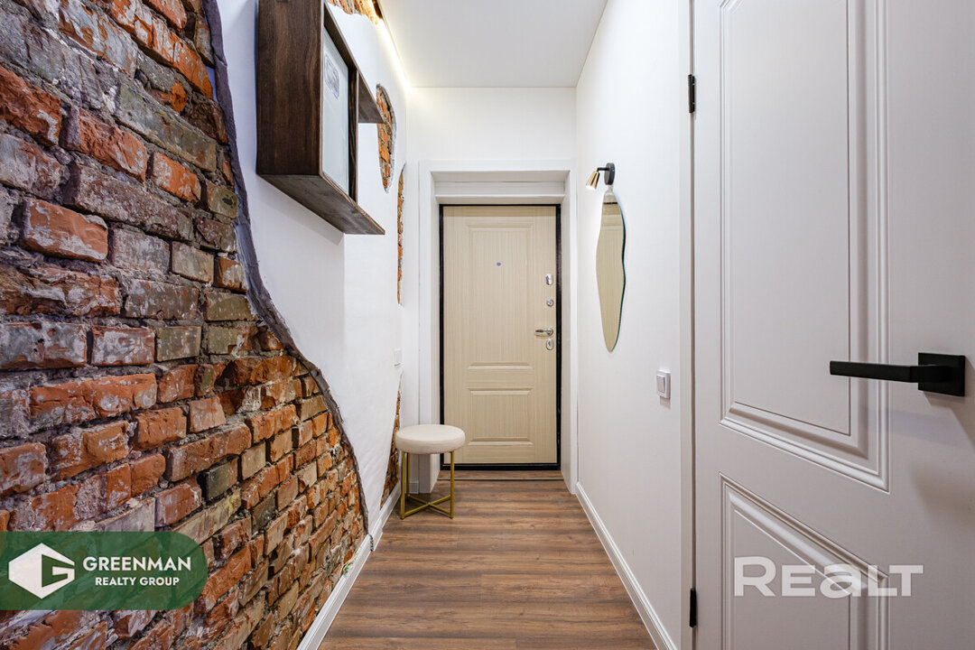 487Некоторые квартиры контрастно выбиваются из среды, в которой находятся. Сталинок со свежим ремонтом хоть и становится больше, но в общей массе это все же скорее исключение, чем правило. И каждая такая квартира привлекает внимание. Так и эта однушка в трехэтажной сталинке на улице Коржа рядом с проспектом Дзержинского. Посмотрим, как удалось обыграть современный ремонт с аутентичными деталями в старом жилфонде.