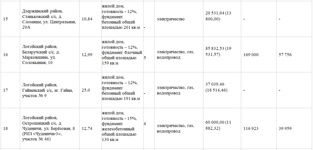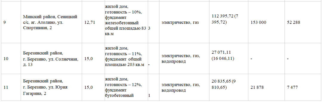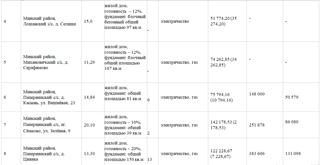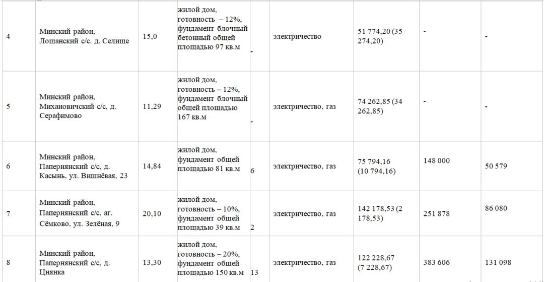 В Минском районе на аукцион было предложено 9 недостроев разной степени готовности. Торги прошли по 5 лотам.
